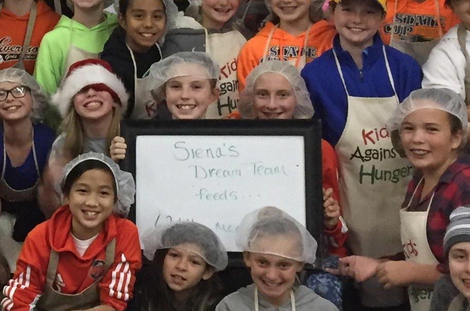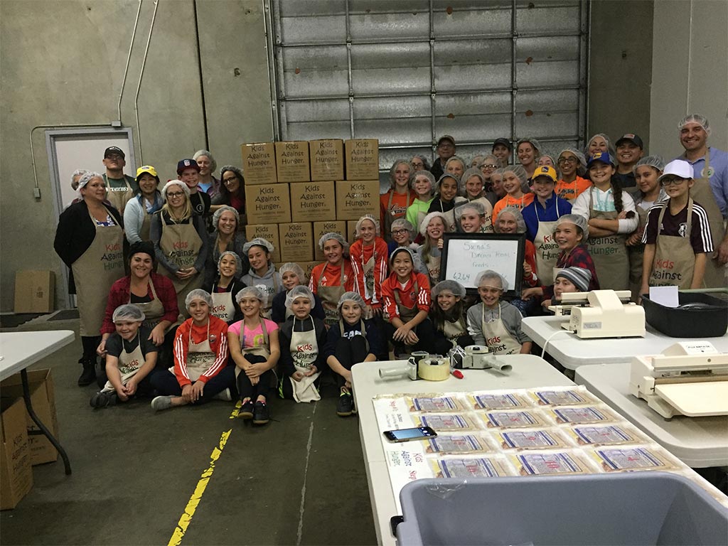 Hi, my name is Siena Queirolo, and I play for 05 Elite II. For my leadership project, I invited soccer players from different clubs to team up in the spirit of good sportsmanship, friendship, and compassion to pack food at Kids Against Hunger in Pleasanton.