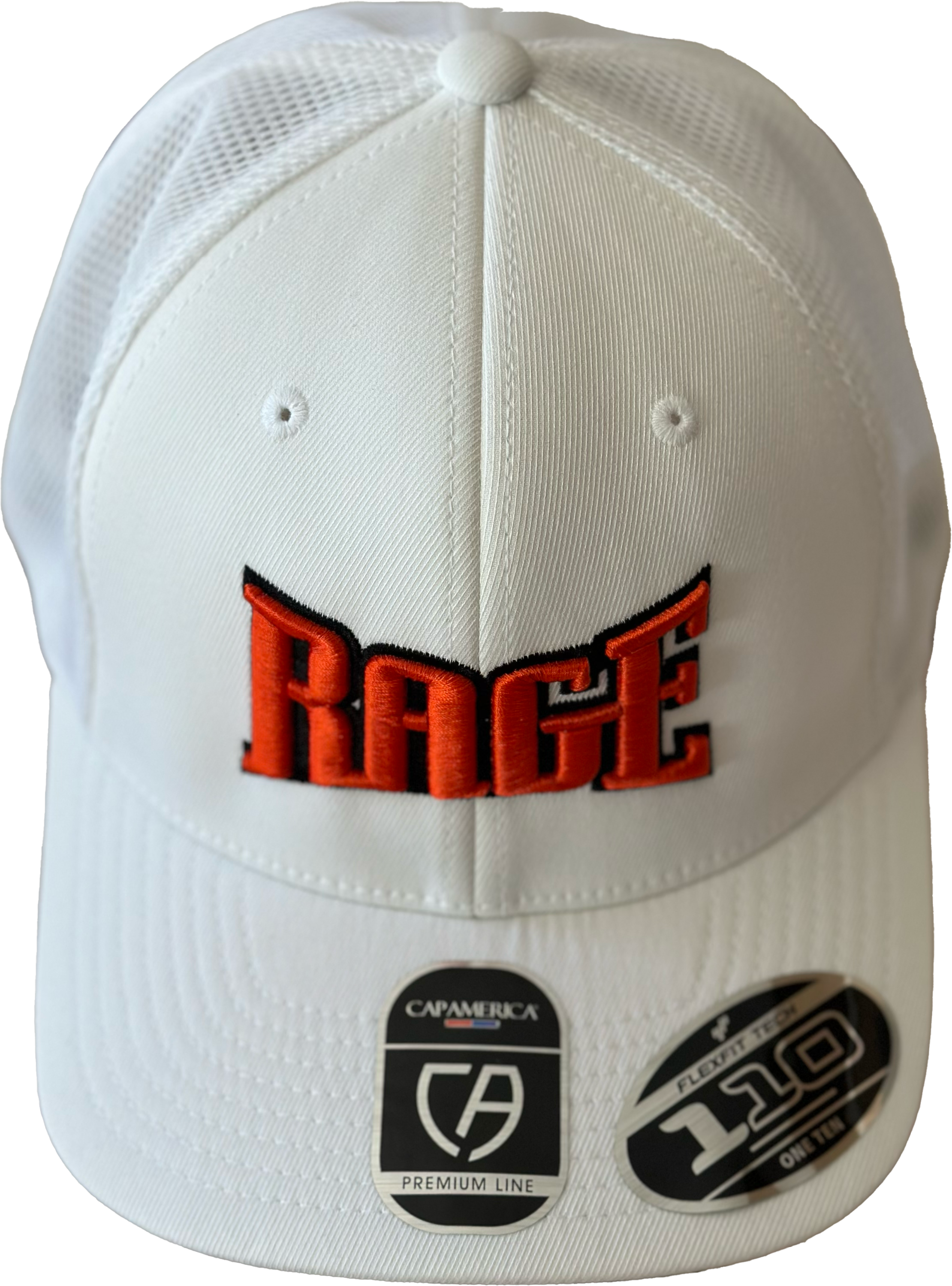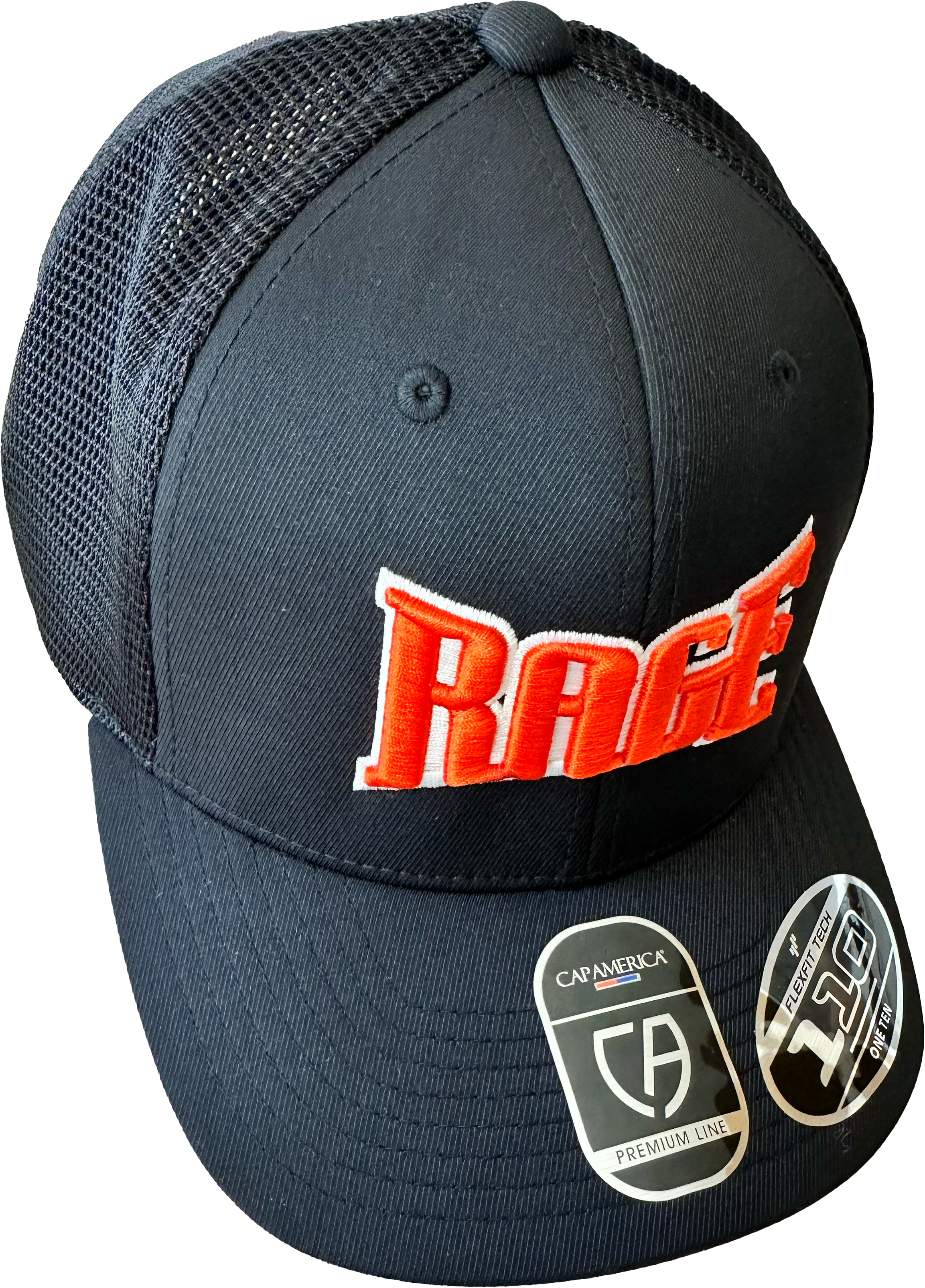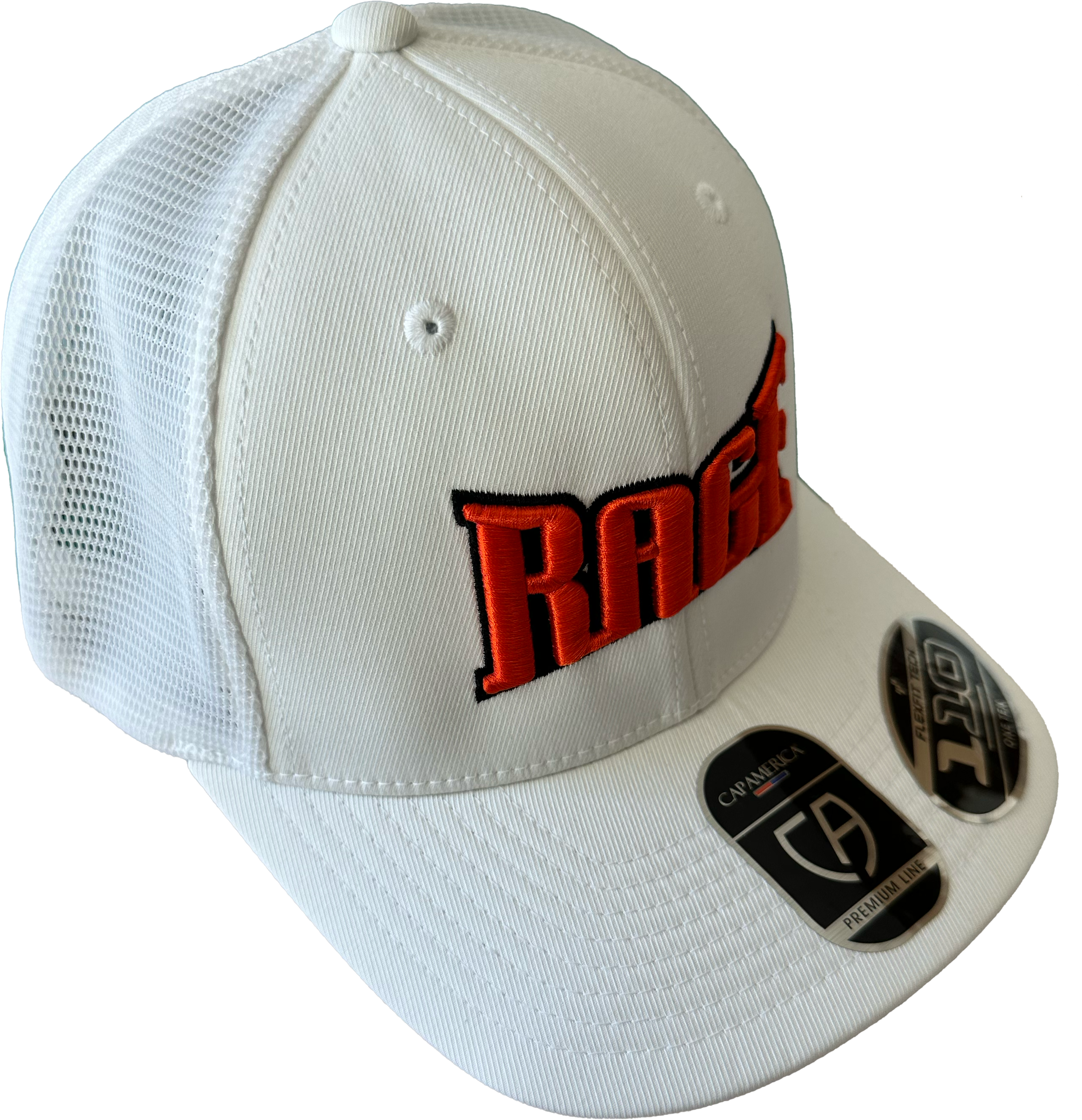 White or Black trucker snapback hat with “RAGE” logo in 3D.